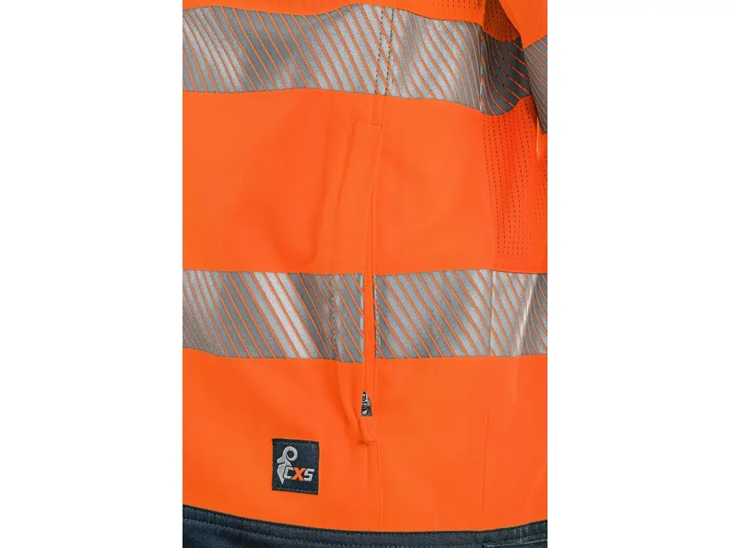 Męska bluza ostrzegawcza CXS HALIFAX przeznaczona jest do pracy w sezonie letnim. Wyposażona w segmentowe taśmy odblaskowe o szerokości 5 cm, które zapewniają doskonałą widoczność i jednocześnie zachowują elastyczność materiału. Bluza zapinana jest na zamek ukryty pod patką z metalowymi zatrzaskami. Posiada kieszenie na piersi z klapką na rzep i ukrytymi kieszeniami na zamek, a także boczne kieszenie na zamek. Mankiety rękawów i dolny brzeg bluzy można regulować za pomocą rzepów. Pod pachami i na plecach zastosowano siateczkowy materiał, który wspomaga mikrocyrkulację powietrza i odprowadzanie ciepła. W połączeniu ze spodniami lub ogrodniczkami, bluza CXS HALIFAX spełnia normę EN ISO 20471, klasa 3. Zalecane zastosowanie: letnia odzież robocza, budownictwo, prace drogowe, logistyka, konserwacja, kierowcy, transport lotniczy i morski, ratownicy, służby techniczne.