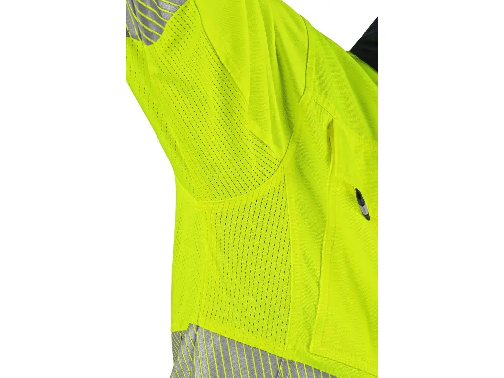Męska bluza ostrzegawcza CXS HALIFAX przeznaczona jest do pracy w sezonie letnim. Wyposażona w segmentowe taśmy odblaskowe o szerokości 5 cm, które zapewniają doskonałą widoczność i jednocześnie zachowują elastyczność materiału. Bluza zapinana jest na zamek ukryty pod patką z metalowymi zatrzaskami. Posiada kieszenie na piersi z klapką na rzep i ukrytymi kieszeniami na zamek, a także boczne kieszenie na zamek. Mankiety rękawów i dolny brzeg bluzy można regulować za pomocą rzepów. Pod pachami i na plecach zastosowano siateczkowy materiał, który wspomaga mikrocyrkulację powietrza i odprowadzanie ciepła. W połączeniu ze spodniami lub ogrodniczkami, bluza CXS HALIFAX spełnia normę EN ISO 20471, klasa 3. Zalecane zastosowanie: letnia odzież robocza, budownictwo, prace drogowe, logistyka, konserwacja, kierowcy, transport lotniczy i morski, ratownicy, służby techniczne.