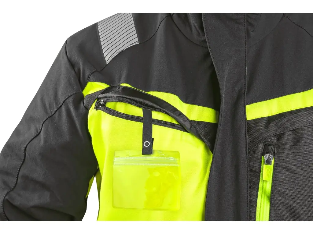 Męska bluza ostrzegawcza z segmentowymi paskami odblaskowymi o szerokości 5 cm. Konstrukcja 4-way stretch pozwala materiałowi rozciągać się we wszystkich czterech kierunkach, a tym samym umożliwia łatwy i swobodny ruch. Bluza na eksponowanych miejscach została wyposażona w dodatki CORDURA®, rękawy z regulowanymi mankietami, kieszeń na piersi na zamek, dwie napiersiowe ukryte kieszenie na zamek, prawa kieszeń z