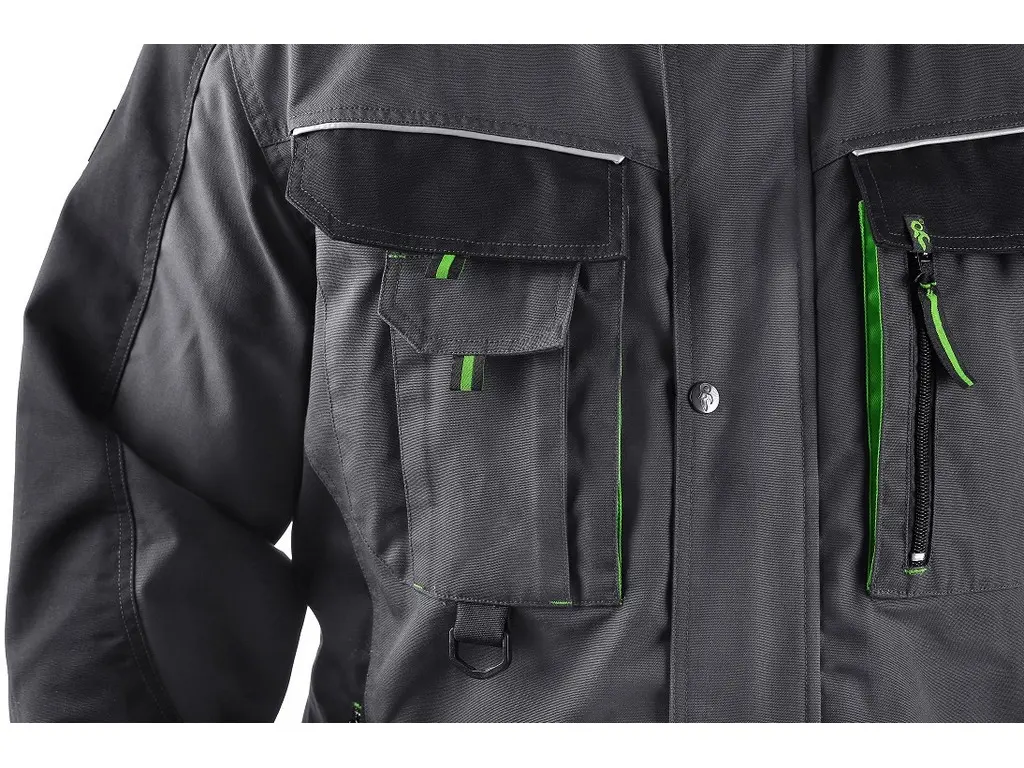 Męska bluza robocza ocieplona polarem, ramiona wzmocnione poliestrem 600D, rękawy z regulowanym mankietem, przykryte zapinanie na zamek i zatrzaski, wielofunkcyjne kieszenie na piersiach, boczne kieszenie na zamek, regulowany pas, elementy odblaskowe. Zalecane zastosowanie: budownictwo, inżynieria, przemysł lekki, przemysł samochodowy, logistyka, magazyn, spedycja, autoserwisy, utrzymanie, montaż, rolnictwo, ogród, hobby.