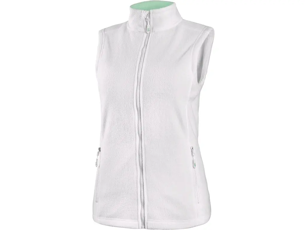 Damska kamizelka z polaru zapinana na zamek, 2 dolne kieszenie na zamek.