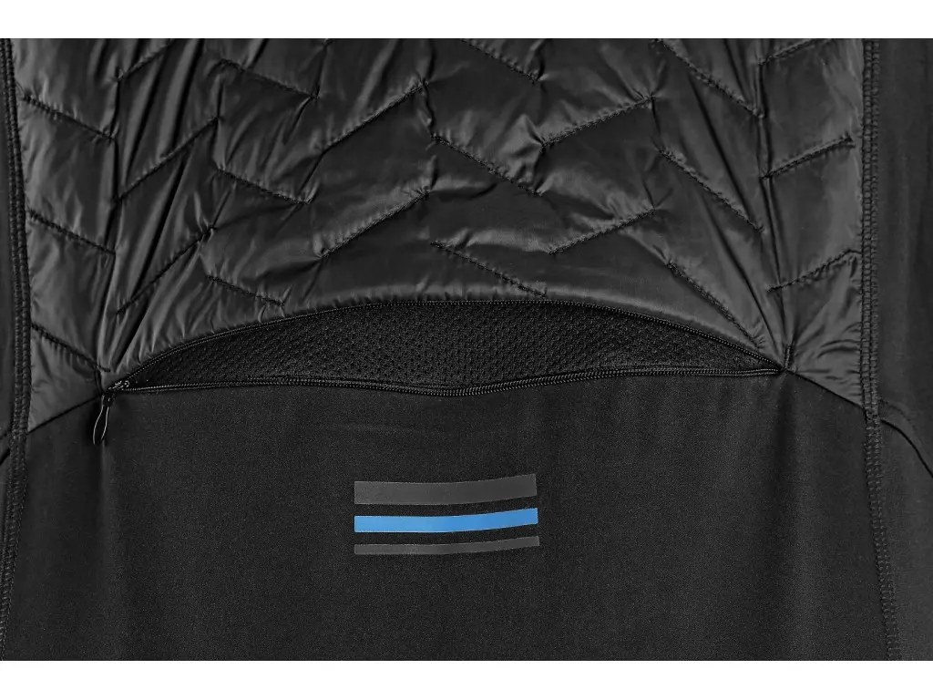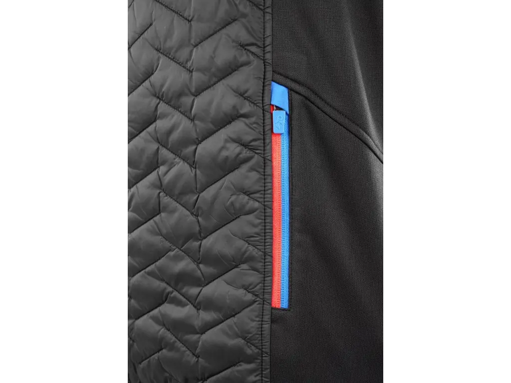 Męska kamizelka z kombinowanych materiałów, odpowiednia do pracy i wypoczynku. Kamizelka ma zapięcie na zamek, dolny brzeg w gumkę, kieszeń napiersiową i boczne kieszenie na zamek, odblaskowe elementy i wewnętrzną kieszeń na zamek.
