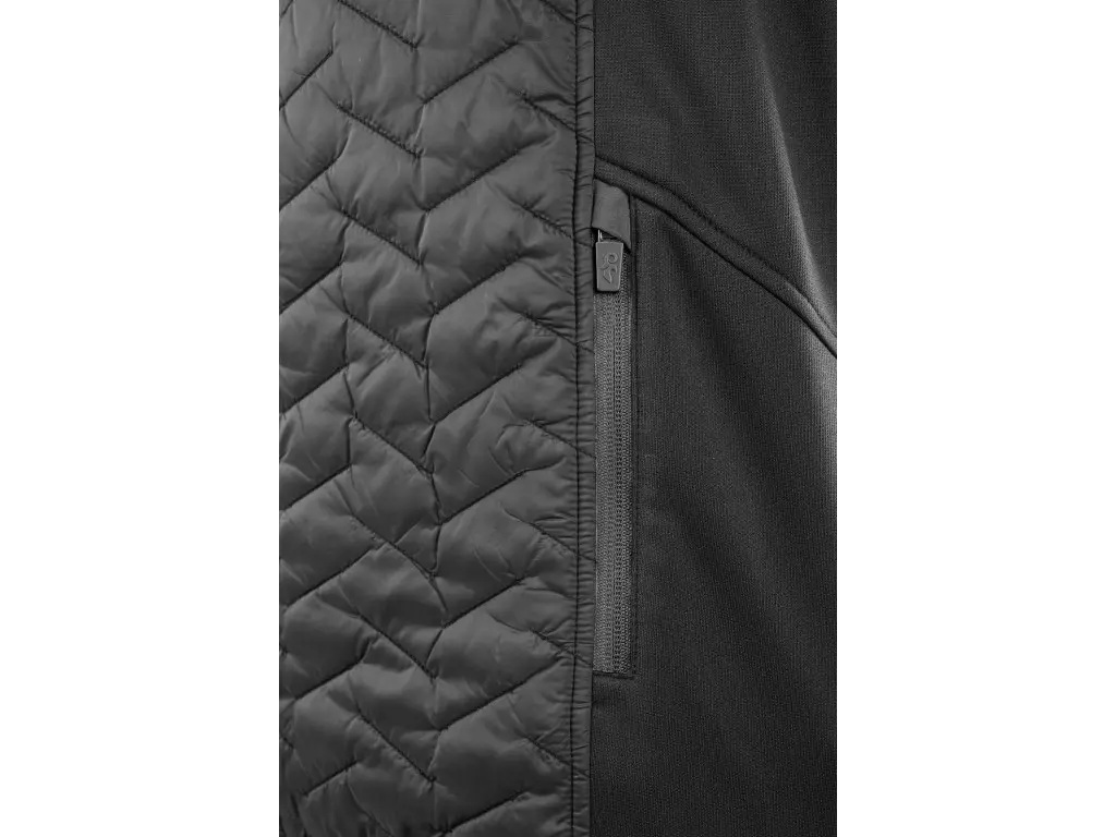 Męska kamizelka z kombinowanych materiałów, odpowiednia do pracy i wypoczynku. Kamizelka ma zapięcie na zamek, dolny brzeg w gumkę, kieszeń napiersiową i boczne kieszenie na zamek, odblaskowe elementy i wewnętrzną kieszeń na zamek.