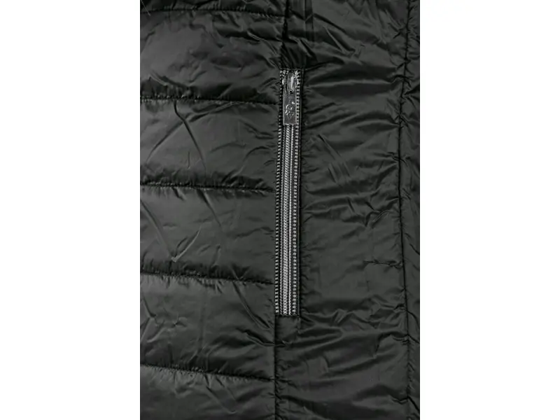 Damska obustronna ocieplana kurtka z kapturem i elementami odblaskowymi. Kurtka jest zapinana na zamek, mankiet rękawu i dolny brzeg w gumkę, dwie boczne kieszenie na zamek z odblaskowymi elementami, odblaskowe elementy z tyłu.