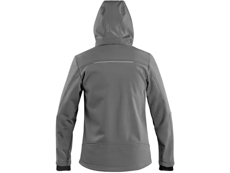 Damska kurtka softshellowa z odpinanym kapturem i elementami odblaskowymi. Nadaje się na wolny czas i do pracy. Odporna na wiatr i wodę dzięki membranie ULTRA TPU o wodoodporności 5000mm i paroprzepuszczalności 5000g/m²/24 h. Wyposażona w wentylację pod pachami, boczne kieszenie na zamek, kieszeń na piersi na zamek oraz wewnętrzną kieszeń na piersi na zamek. Rękawy posiadają elastyczne wewnętrzne mankiety. Dolny brzeg kurtki można ściągnąć i dopasować do sylwetki. Podszewka jest kombinowana z polarem dla większego komfortu.