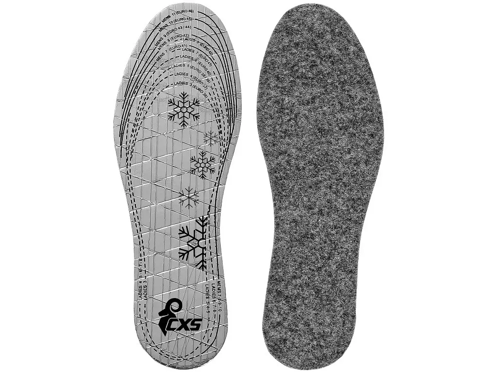Ocieplane wkładki do butów z folią aluminiową. Wykonanie - 50% polar, 50% folia aluminiowa, wewnętrzna warstwa z PE. Dopasowanie rozmiaru - cięcie wg zaznaczonych linii. Wkładki są przeznaczone do użycia w zimie.