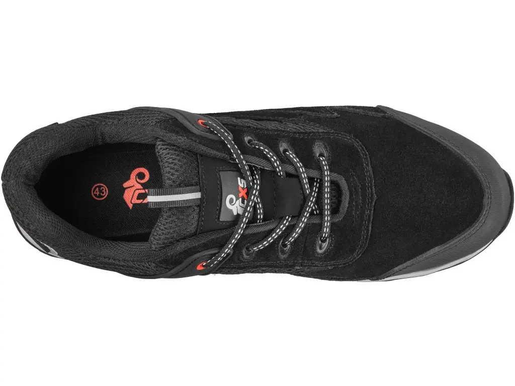 Półbut textylny ze stalowym noskiem, elementy odblaskowe. Materiał: cholewka z wytrzymałego 1,8 - 2,0 mm poliestru z możliwością prania do 30°C, 3-warstwowa oddychająca podszewka tekstylna, PU-PU, podeszwa antypoślizgowa, ntystatyczna, odporna na ol