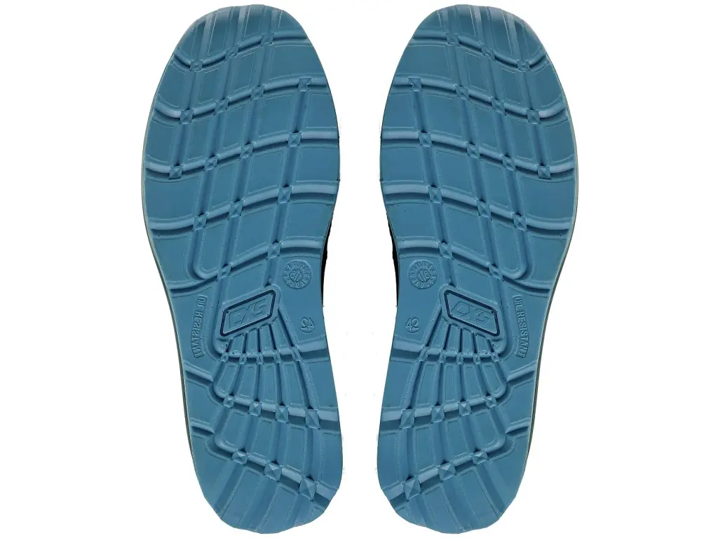Półbut textylny, elementy odblaskowe. Materiał: cholewka z wytrzymałego 1,8 - 2,0 mm poliestru z możliwością prania do 30°C, nosek z wzmocnieniem z mikrowłókna, 3-warstwowa oddychająca textylna podszewka, podeszwa PU-PU przeciwpoślizgowa, olejoodporna, antystatyczna.