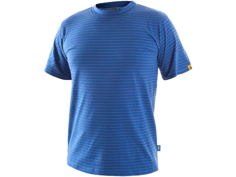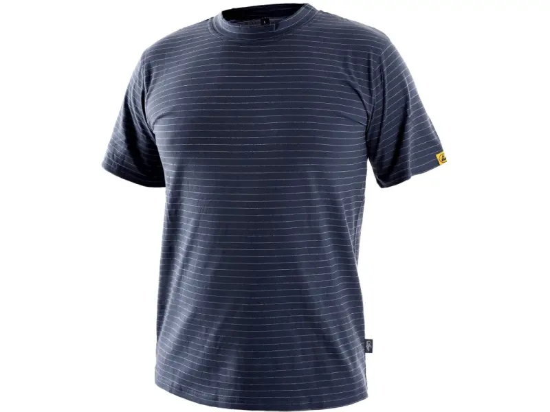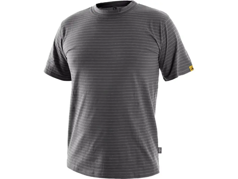 Antystatyczna koszulka z krótkim rękawem, okrągły dekolt, podwójne szwy, boczne szwy. Zalecane zastosowanie: środowiska ESD, obsługa maszyn CNC i robotów.