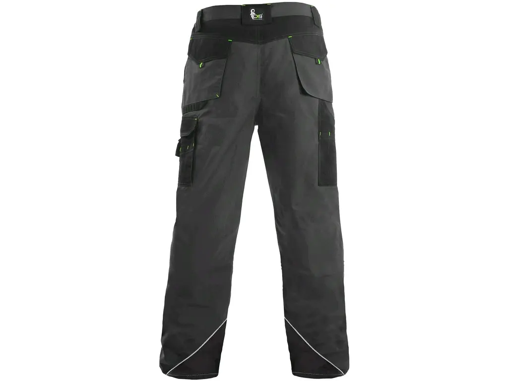 Męskie spodnie robocze ocieplone flanelą, pas ze szlufkami na pasek i gumą po bokach, kieszenie klinowe z przodu, kieszenie wielofunkcyjne z obu stron, kolana wzmocnione poliestrem 600D z możliwością włożenia nakolanników, dwie kieszenie z patkami, brzeg nogawek wzmocniony poliesterem 600D, elementy odblaskowe. Zalecane zastosowanie: budownictwo, inżynieria, przemysł lekki, przemysł samochodowy, logistyka, magazyn, spedycja, autoserwisy, utrzymanie, montaż, rolnictwo, ogród, hobby.