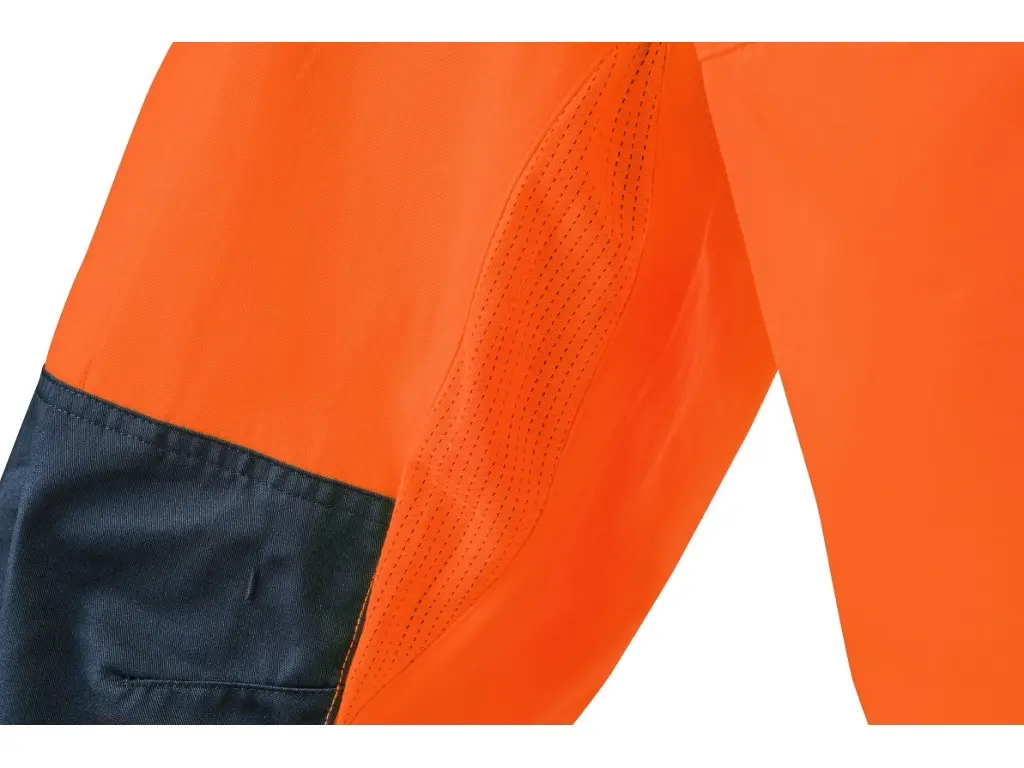 Męskie ogrodniczki ostrzegawcze CXS HALIFAX przeznaczone są do pracy w okresie letnim. Wyposażone są w segmentowe taśmy odblaskowe o szerokości 8 cm, które zapewniają wysoką widoczność, jednocześnie zachowując elastyczność materiału. Regulowane szelki z gumką z tyłu umożliwiają swobodę ruchu i wygodne noszenie. Spodnie mają pas ze szlufkami na pasek i boczne zapięcie na guziki, zakryty zamek błyskawiczny oraz szereg praktycznych kieszeni – kieszeń na piersi z zamkiem, dwie kieszenie przednie, dwie tylne z klapką na rzep oraz prawą kieszeń boczną na zamek. Wzmocnione kolana zwiększają wytrzymałość i umożliwiają włożenie nakolanników, co podnosi komfort pracy w pozycji klęczącej. Po wewnętrznej stronie ud i z tyłu kolan zastosowano materiał siatkowy w celu poprawy mikrocyrkulacji powietrza i odprowadzania ciepła. W połączeniu z bluzą CXS HALIFAX spodnie spełniają normę EN ISO 20471 klasa 3. System EASY-PROLONG umożliwia proste przedłużenie spodni dla wyższej sylwetki. Zalecane zastosowanie: letnia odzież robocza, budownictwo, prace drogowe, logistyka, konserwacja, kierowcy, transport lotniczy i morski, służby ratunkowe, usługi techniczne.