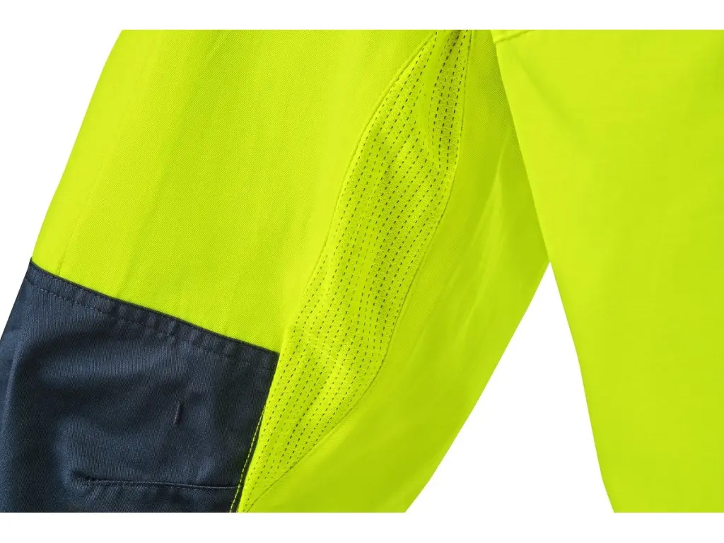 Męskie ogrodniczki ostrzegawcze CXS HALIFAX przeznaczone są do pracy w okresie letnim. Wyposażone są w segmentowe taśmy odblaskowe o szerokości 8 cm, które zapewniają wysoką widoczność, jednocześnie zachowując elastyczność materiału. Regulowane szelki z gumką z tyłu umożliwiają swobodę ruchu i wygodne noszenie. Spodnie mają pas ze szlufkami na pasek i boczne zapięcie na guziki, zakryty zamek błyskawiczny oraz szereg praktycznych kieszeni – kieszeń na piersi z zamkiem, dwie kieszenie przednie, dwie tylne z klapką na rzep oraz prawą kieszeń boczną na zamek. Wzmocnione kolana zwiększają wytrzymałość i umożliwiają włożenie nakolanników, co podnosi komfort pracy w pozycji klęczącej. Po wewnętrznej stronie ud i z tyłu kolan zastosowano materiał siatkowy w celu poprawy mikrocyrkulacji powietrza i odprowadzania ciepła. W połączeniu z bluzą CXS HALIFAX spodnie spełniają normę EN ISO 20471 klasa 3. System EASY-PROLONG umożliwia proste przedłużenie spodni dla wyższej sylwetki. Zalecane zastosowanie: letnia odzież robocza, budownictwo, prace drogowe, logistyka, konserwacja, kierowcy, transport lotniczy i morski, służby ratunkowe, usługi techniczne.