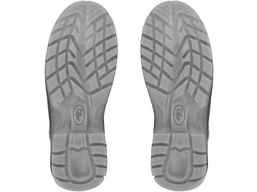 Półbut roboczy, perforowany, bez stalowego noska. Materiał: cholewka z 1,4 - 1,6 mm jakościowej skóry szlifowanej w kombinacji z oddychającą tkaniną Cambridge, elementy odblaskowe z PU, oddychająca mesh podszewka odporna na ścieranie, podeszwa: PU-TPU, przeciwpoślizgowa, antystatyczna, olejoodporna.