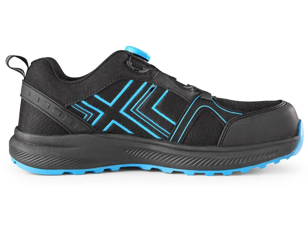Półbut bezpieczny łączący niezawodną ochronę z komfortem i nowoczesnym designem. Wyposażony w nosek z laminatu i tekstylną wkładkę antyprzebiciową, które chronią stopę przed uderzeniami i ostrymi przedmiotami. Dodatkową ochronę zapewnia wzmocnienie noska i pięty z TPU. Specjalny system szybkiego sznurowania umożliwia łatwe zakładanie i zdejmowanie obuwia. Oddychająca cholewka i wyjmowana komfortowa wkładka zapewniają wygodę noszenia. Elementy odblaskowe zwiększają widoczność w warunkach słabego oświetlenia. Materiał: cholewka wykonana z hydrofobowej tkaniny typu mesh (400 g/m²) z dodatkami z TPU i PVC, kołnierz z mikrofibry, podszewka z oddychającej tkaniny odpornej na ścieranie, wewnętrzna część pięty wzmocniona mikrofibrą. Podeszwa: EVA/guma – antypoślizgowa, antystatyczna, olejoodporna, odporna na przebicie, zimno (CI), ciepło (HI) oraz kontakt z gorącym podłożem do 300 °C (HRO). Zalecane zastosowanie: logistyka, magazyny, lekki i średnio-ciężki przemysł, lekkie prace wykończeniowe wewnątrz budynków.