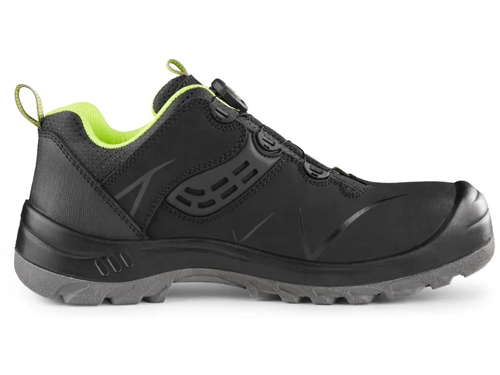 Półbut skórzany z plastikowym noskiem i wkładką Dyna-Flex®, elementy odblaskowe. Specjalny system zapinania pozwala na szybkie zdejmowanie butów. Materiał: cholewka z 1,6 - 1,8 mm dwoiny nubukowej (z jednego kawałka), nosek z PU wzmocnieniem, TPU napiętek ochronny, podszewka z włókniny przewiewnej odpornej na ścieranie, podeszwa: PU-PU, olejoodporna, antystatyczna, przeciwpoślizgowa, odporna na przebicie.