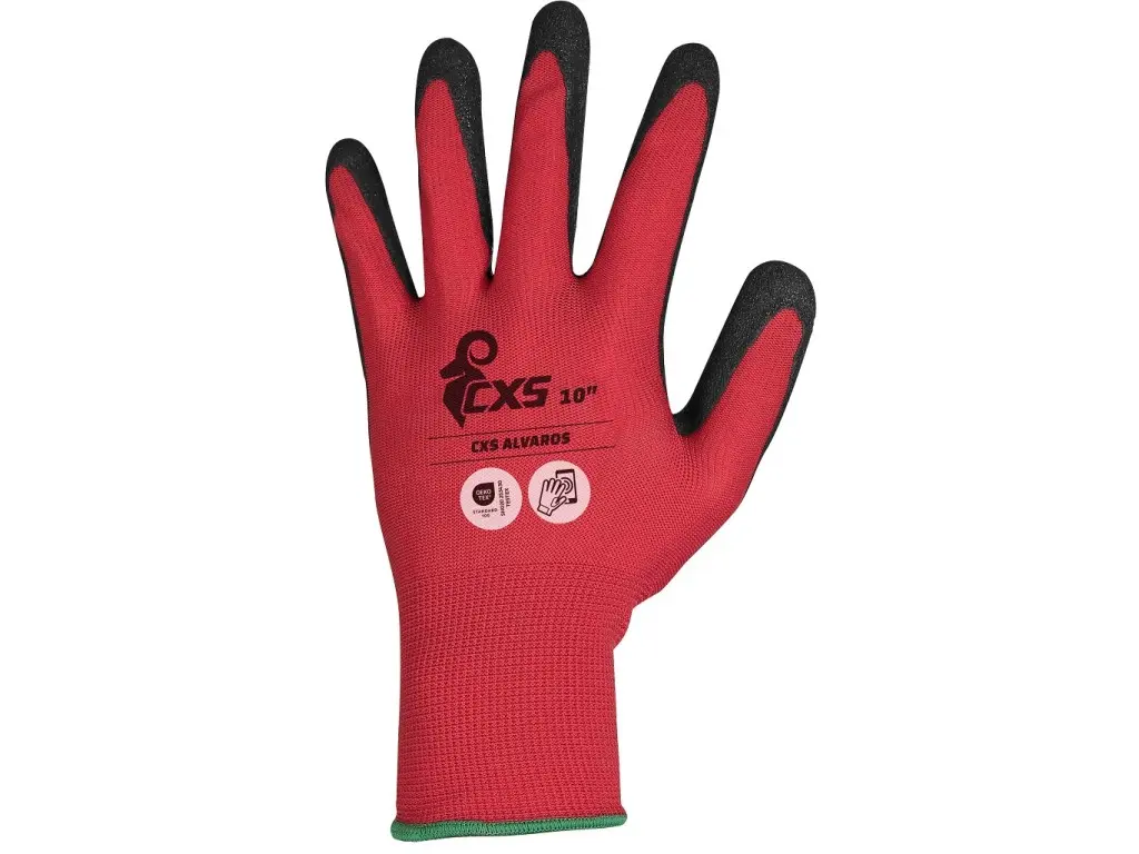Rękawice CXS ALVAROS, powlekane w połowie, nitryl, kolor czerwono-czarny, roz. 09