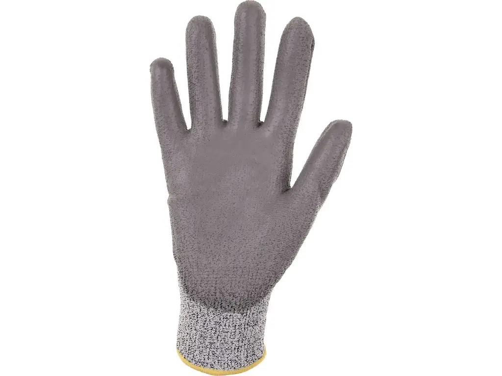 Dziane rękawice bezszwowe, odporność klasa 3, w połowie powlekane poliuretanem. Doskonała odporność na ścieranie i przecięcie. Zalecane zastosowanie: logistyka, magazyn, manipulacja szkłem taflowym i ostrymi przedmiotami, obróbka blachy, cięcie suchych, lakierowanych lub galwanizowanych części, cięcie małych, suchych lub lekko zaolejowanych części, konserwacja.