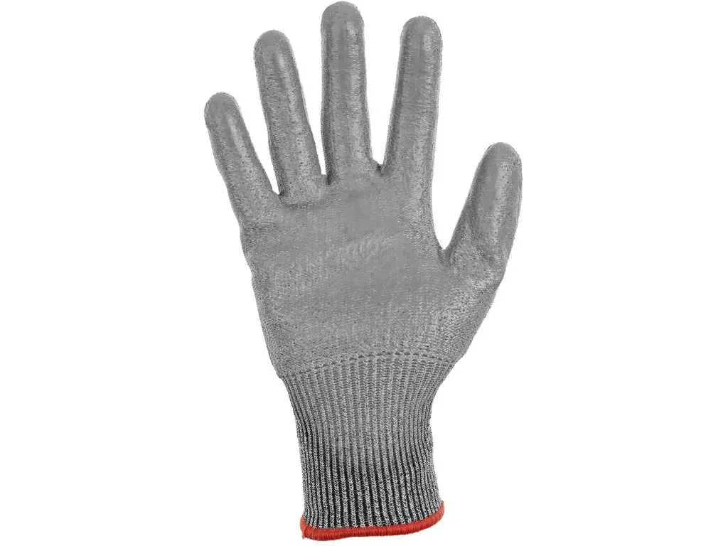 Dziane rękawice bezszwowe, odporność klasa D, w połowie powlekane poliuretanem. Doskonała odporność na ścieranie i przecięcie. Zalecane zastosowanie: logistyka, magazyn, manipulacja szkłem taflowym i ostrymi przedmiotami, obróbka blachy, cięcie suchych, lakierowanych lub galwanizowanych części, cięcie małych, suchych lub lekko zaolejowanych części, konserwacja.