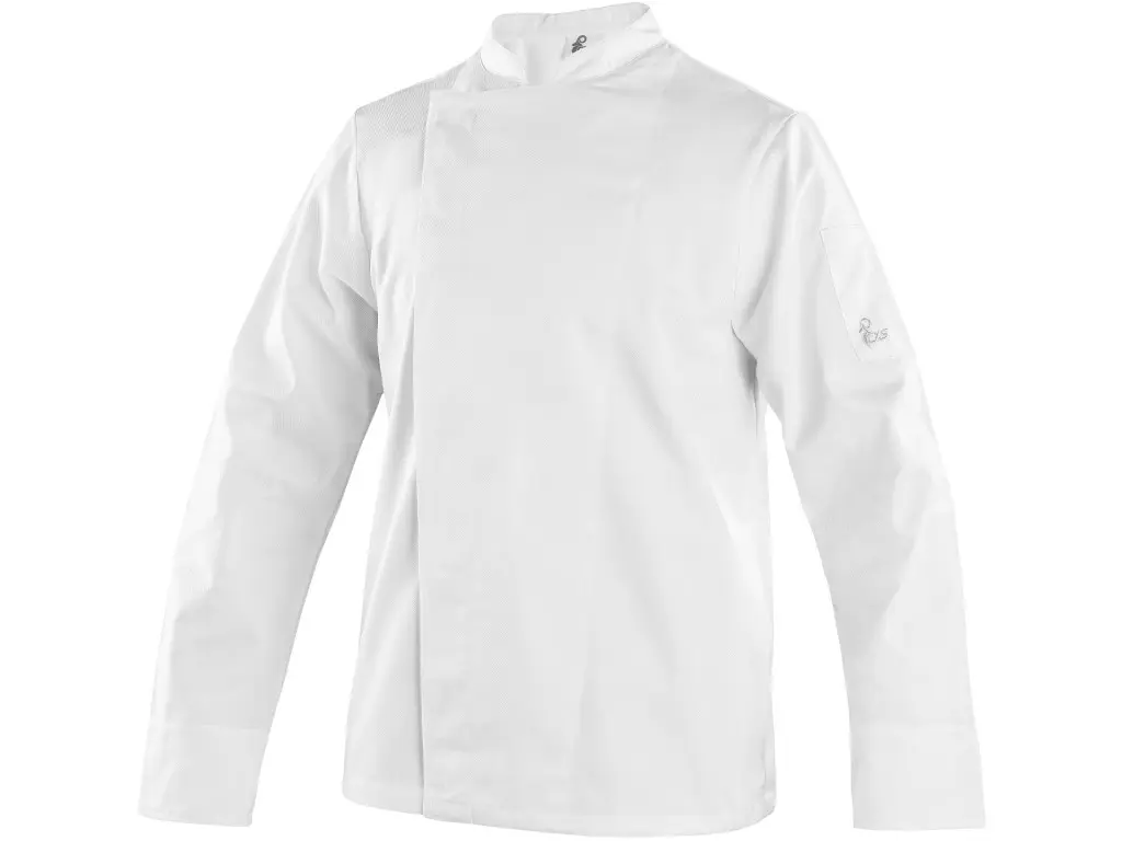 Kurtka kucharska o nowoczesnym designie z długim rękawem oferuje idealne połączenie ochrony i komfortu podczas pracy w gastronomii.Tkanina mieszana na przednim panelu zapewnia trwałość i schludny wygląd, natomiast tylny panel z lekkiej siateczki wspiera cyrkulację powietrza, zwiększając komfort pracy w ciepłym środowisku. Zapięcie na napy ułatwia zakładanie oraz manipulację podczas pracy. Długie rękawy zakończone mankietem gwarantują wygodę noszenia i lepsze dopasowanie podczas pracy z potrawami. Praktyczna funkcjonalna kieszonka na lewym rękawie zapewnia idealne miejsce na długopis. Zalecane zastosowanie: restauracje, hotele, catering, bistra, stołówki szkolne i zakładowe, lokale gastronomiczne oraz szkoły kulinarne.