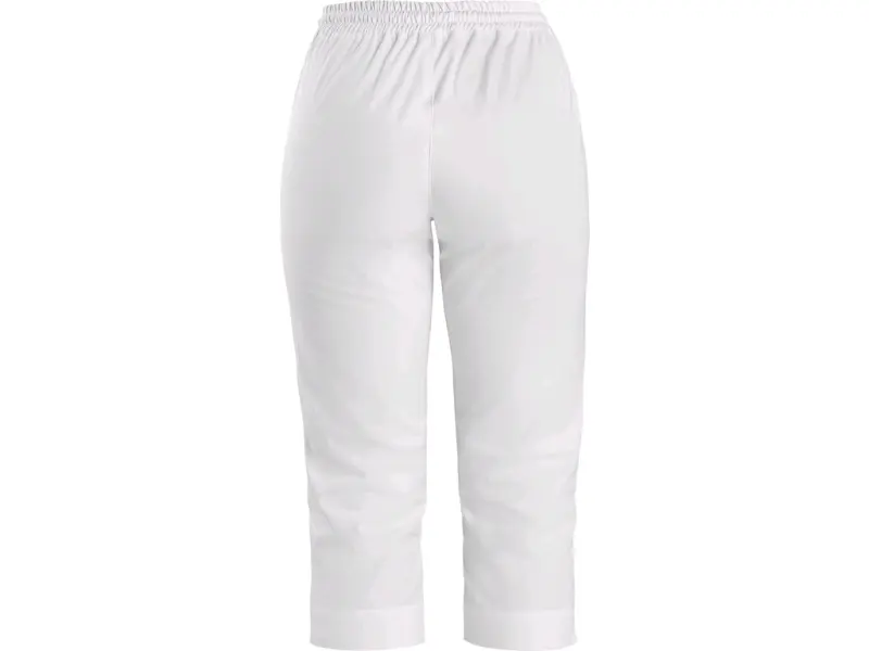 Wygodne damskie 3/4 spodnie, pas do gumy ze sznurówkami, 2 duże kieszenie klinowe z przodu, nogawki do mankietu z rozcięciem. Zalecane zastosowanie: prywatne gabinety lekarskie, kliniki i duże placówki medyczne, pogotowie ratunkowe, uzdrowiska i kąpiele, instytucje opieki społecznej, apteki, szkoły o profilu medycznym i gastronomicznym.