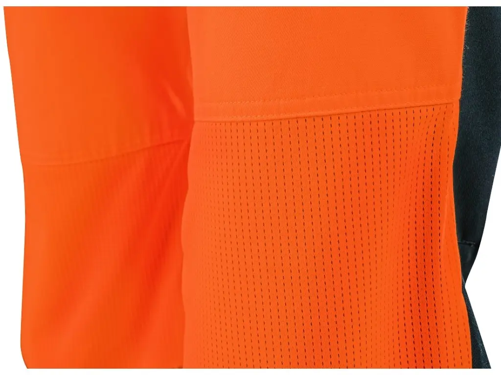 Męskie spodnie ostrzegawcze CXS HALIFAX przeznaczone są do pracy w okresie letnim. Wyposażone są w segmentowe taśmy odblaskowe o szerokości 8 cm, które zapewniają wysoką widoczność, jednocześnie zachowując elastyczność materiału. Spodnie mają elastyczny pas z gumką po bokach i szlufki na pasek. Kryte zapięcie na zamek, dwie kieszenie przednie, dwie tylne kieszenie z patką na rzep oraz prawa boczna kieszeń na zamek oferują praktyczne miejsce do przechowywania. Wzmocnione kolana zwiększają wytrzymałość i umożliwiają włożenie nakolanników, co podnosi komfort pracy w pozycji klęczącej. Po wewnętrznej stronie ud i z tyłu kolan zastosowano materiał siatkowy w celu poprawy mikrocyrkulacji powietrza i odprowadzania ciepła. W połączeniu z bluzą CXS HALIFAX spodnie spełniają normę EN ISO 20471 klasa 3. System EASY-PROLONG umożliwia proste przedłużenie spodni dla wyższej sylwetki. Zalecane zastosowanie: letnia odzież robocza, budownictwo, prace drogowe, logistyka, konserwacja, kierowcy, transport lotniczy i morski, służby ratunkowe, usługi techniczne.
