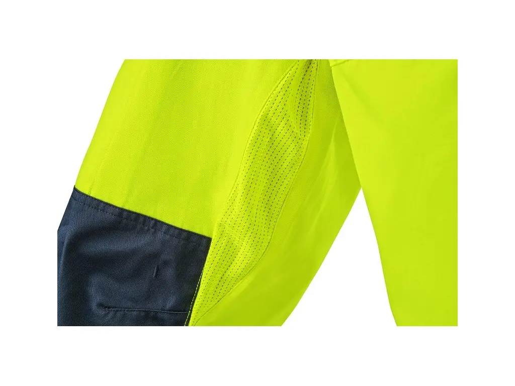 Męskie spodnie ostrzegawcze CXS HALIFAX przeznaczone są do pracy w okresie letnim. Wyposażone są w segmentowe taśmy odblaskowe o szerokości 8 cm, które zapewniają wysoką widoczność, jednocześnie zachowując elastyczność materiału. Spodnie mają elastyczny pas z gumką po bokach i szlufki na pasek. Kryte zapięcie na zamek, dwie kieszenie przednie, dwie tylne kieszenie z patką na rzep oraz prawa boczna kieszeń na zamek oferują praktyczne miejsce do przechowywania. Wzmocnione kolana zwiększają wytrzymałość i umożliwiają włożenie nakolanników, co podnosi komfort pracy w pozycji klęczącej. Po wewnętrznej stronie ud i z tyłu kolan zastosowano materiał siatkowy w celu poprawy mikrocyrkulacji powietrza i odprowadzania ciepła. W połączeniu z bluzą CXS HALIFAX spodnie spełniają normę EN ISO 20471 klasa 3. System EASY-PROLONG umożliwia proste przedłużenie spodni dla wyższej sylwetki. Zalecane zastosowanie: letnia odzież robocza, budownictwo, prace drogowe, logistyka, konserwacja, kierowcy, transport lotniczy i morski, służby ratunkowe, usługi techniczne.