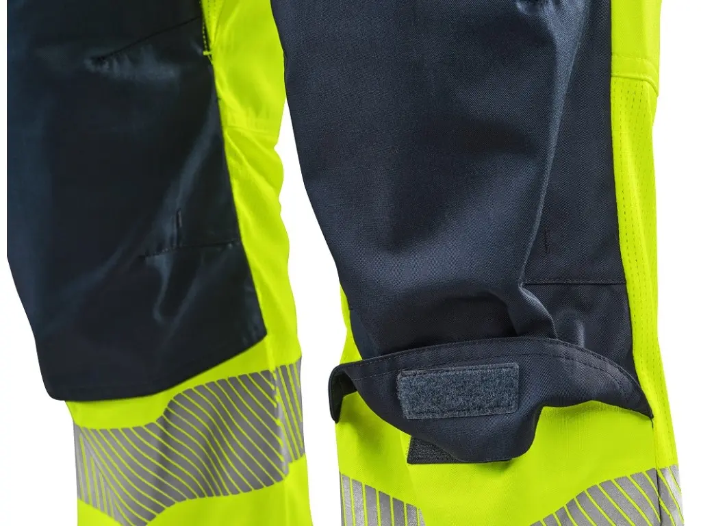 Męskie spodnie ostrzegawcze CXS HALIFAX przeznaczone są do pracy w okresie letnim. Wyposażone są w segmentowe taśmy odblaskowe o szerokości 8 cm, które zapewniają wysoką widoczność, jednocześnie zachowując elastyczność materiału. Spodnie mają elastyczny pas z gumką po bokach i szlufki na pasek. Kryte zapięcie na zamek, dwie kieszenie przednie, dwie tylne kieszenie z patką na rzep oraz prawa boczna kieszeń na zamek oferują praktyczne miejsce do przechowywania. Wzmocnione kolana zwiększają wytrzymałość i umożliwiają włożenie nakolanników, co podnosi komfort pracy w pozycji klęczącej. Po wewnętrznej stronie ud i z tyłu kolan zastosowano materiał siatkowy w celu poprawy mikrocyrkulacji powietrza i odprowadzania ciepła. W połączeniu z bluzą CXS HALIFAX spodnie spełniają normę EN ISO 20471 klasa 3. System EASY-PROLONG umożliwia proste przedłużenie spodni dla wyższej sylwetki. Zalecane zastosowanie: letnia odzież robocza, budownictwo, prace drogowe, logistyka, konserwacja, kierowcy, transport lotniczy i morski, służby ratunkowe, usługi techniczne.