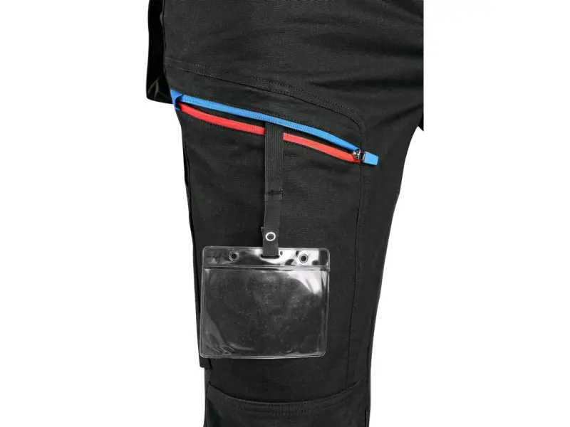 Spodnie CXS LEONIS, męskie, kolor czarny, niebiesko-czerwone elementy, roz. 64