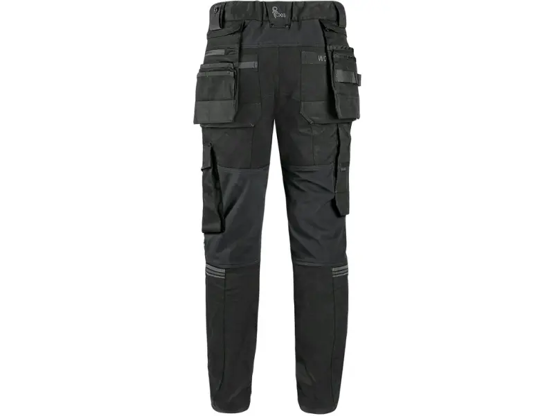 Męskie spodnie robocze w nowoczesnym kroju slim-fit. Kombinacja wysokiej jakości materiału mieszanego z elastanem i 4-way stretch materiałem w miejscach narażonych na uszkodzenia umożliwia łatwy i swobodny ruch. Spodnie zostały wyposażone w: elastyczny pas z możliwością regulacji rozmiaru, szlufkami na pasek i prezciwpoślizgowym nadrukiem wewnątrz, 2 kieszenie z przodu, 2 odpinane kieszenie na narzędzia wzmocnione materiałem CORDURA®, kieszenie na udach na zamek z możliwością wentylacji, kieszeń z boku z kieszenią na zamek, 2 tylne kieszenie (jedna na zamek) wzmocnione materiałem CORDURA®, kieszeń na metr składany z dalszymi przegródkami, ergonomicznie ukształtowane kolana wzmocnione materiałem CORDURA® z możliwością włożenia nakolanników z wkładaniem z boku i wentylacją, kieszonka na kartę ID, dolna część nogawek jest wzmocniona materiałem CORDURA®, elementy odblaskowe. Spodnie są wyposażone w system EASY-PROLONG, który umożliwia łatwe przedłużenie spodni do wyższej sylwetki. Zalecane zastosowanie: inżynieria, budownictwo, przemysł lekki, przemysł samochodowy, logistyka, magazyn, spedycja, autoserwisy, utrzymanie, montaże, rolnictwo, ogród, hobby i wypoczynek.