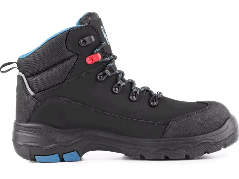Trzewik roboczy z kompozytowym noskiem i tekstylną antypenetrującą wkładką, elementy odblaskowe. Materiał: cholewka wykonana z hydrofobowej skóry bydlęcej o grubości 1,8 - 2 mm, wyściełany kołnierz tekstylny, zewnętrzny nosek z TPU odporny na ścieranie zgodny z SC (Scuff cap), zewnętrzna ochrona pięty wykonana z teksturowanego TPU, podszewka: oddychająca tkanina o dobrych właściwościach absorpcyjnych, wewnętrzna pięta z PU wzmocnieniem wygodna wyjmowana wkładka wykonana z dzianiny, PU i miękkiego ETPU z efektem amortyzacyjnym, podeszwa: antypoślizgowa, antystatyczna, olejoodporna, odporna na przebicie oraz na ciepło kontaktowe do 300°C.