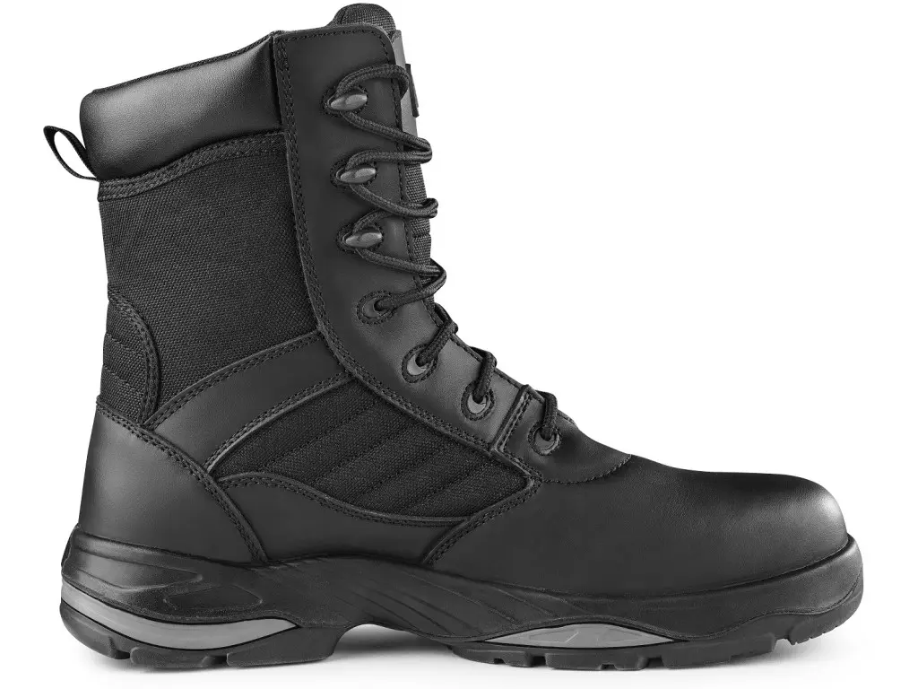Obuwie ochronne do połowy łydki, kombinowane, z kompozytowym podnoskiem i tekstylną wkładką antyprzebiciową Dyna - Flex. Materiał: cholewka z licowej skóry bydlęcej o grubości 1,6–1,8 mm oraz hydrofobowej tkaniny Oxford, podszewka z oddychającej siateczki mesh, wyjmowana wkładka z pianki poliuretanowej. Podeszwa: PU-guma, antypoślizgowa, antystatyczna, odporna na paliwa i oleje, odporna na zimno (CI), ciepło (HI) oraz kontakt z gorącą powierzchnią do 300 °C. Odpowiednia do lekkich i średnio wymagających zastosowań, na przykład w budownictwie, logistyce, rzemiośle, usługach lub przy mniej wymagających pracach na zewnątrz.