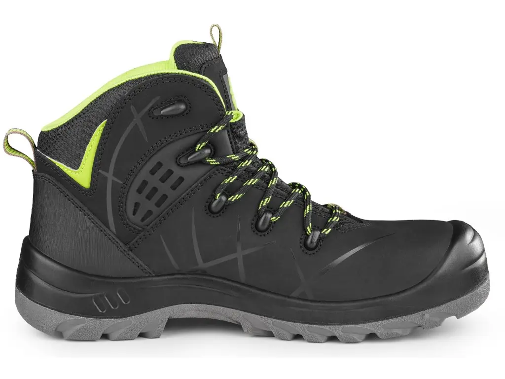 Trzewik roboczy skórzany, elementy odblaskowe. Materiał: cholewka z 1,6 - 1,8 mm dwoiny nubukowej (z jednego kawałka), TPU napiętek ochronny, bez elementów metalowych, podszewka z włókniny przewiewnej odpornej na ścieranie, podeszwa: PU-PU, olejoodporna, antystatyczna, przeciwpoślizgowa.